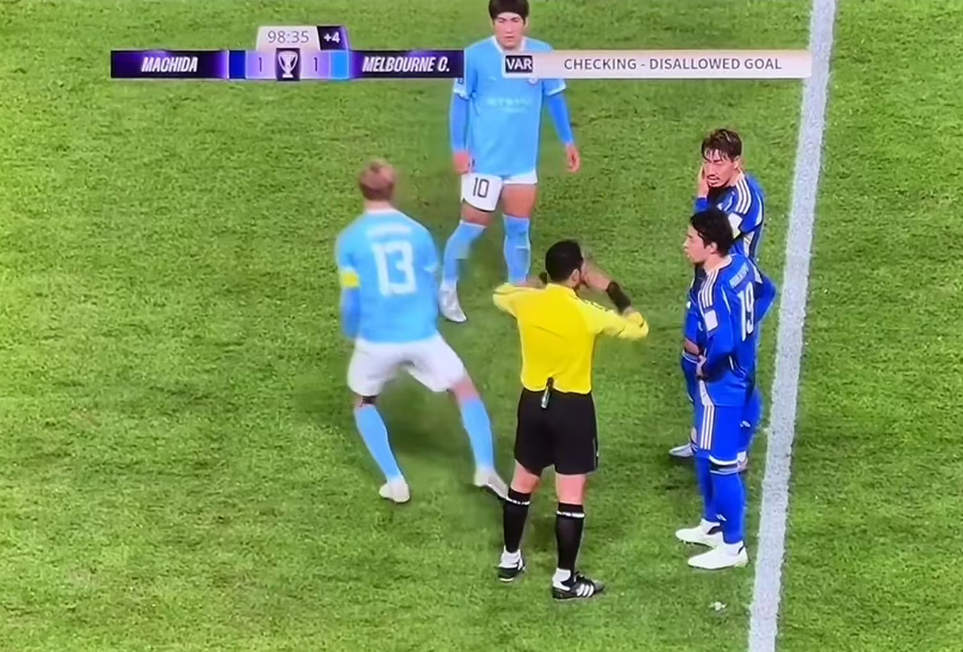 第94分钟,墨尔本城连续获得角球!混战中纳布特补射,皮球击中横梁后弹射进球门,尽管皮球瞬间被后卫解围,但是主裁判通过VAR确认,纳布特的射门不多不少,刚刚好越过门线。最终墨尔本城依靠门线上的进球,2-1绝杀町田泽维亚。