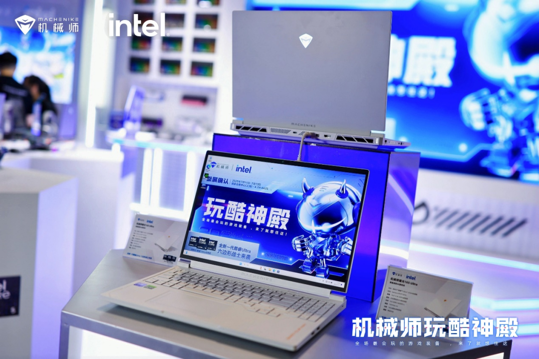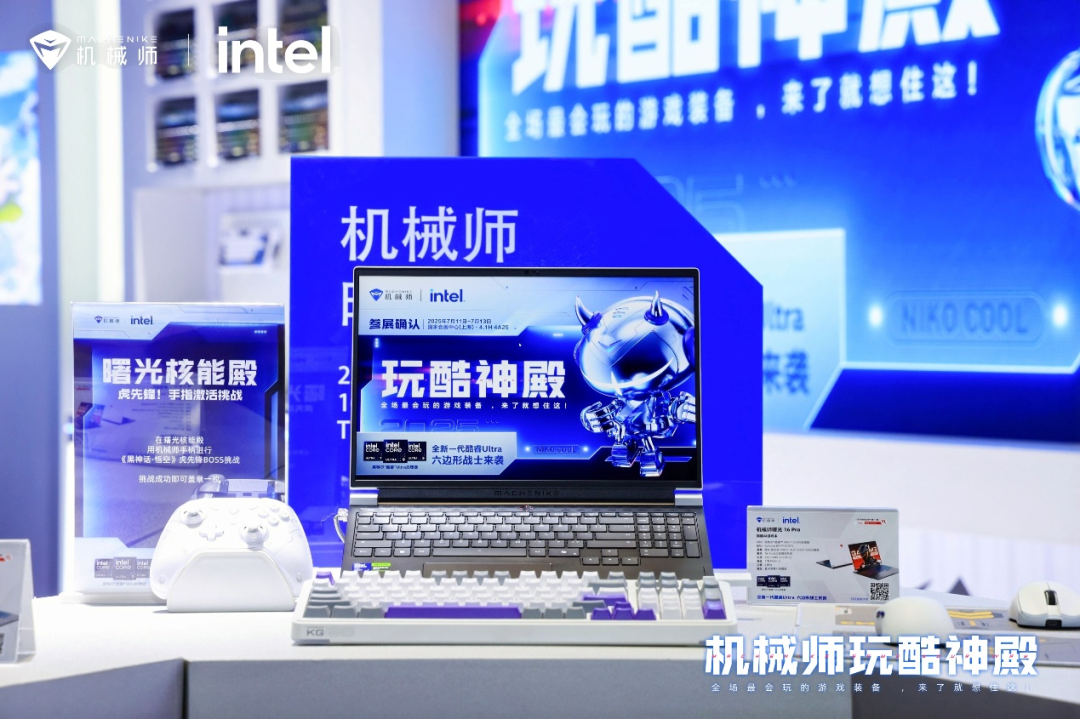 本次展台的绝对明星,无疑是全球首发的、引领“高静AI游戏本”新浪潮的全能先锋图腾——机械师曙光16S Ultra。作为英特尔首批AI高静游戏本,机械师曙光16S Ultra不仅是性能的进化,更是游戏体验规则的重新定义。它所代表的“六边形战士”,在原有的性能、屏幕、散热、设计、操控、智能六大维度之上,以英特尔®酷睿™Ultra处理器为核心,融入Intel提出全新的AI“高静”核心理念,能为玩家提供“要性能有巅峰,要安静有沉浸”的顶级体验。
