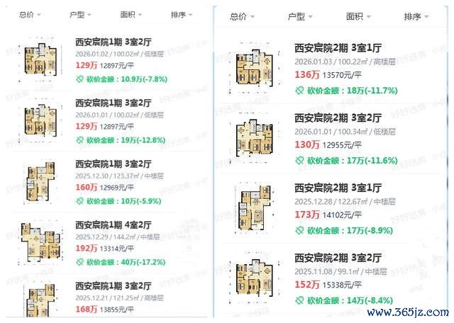比如保利天悦,成交量比较大的小三室101㎡,总价200万出头,140㎡四室约265万,均价1.8万-2万/㎡的价格,价格回归理性;西安宸院1.2万-1.4万/㎡的成交价,也是很多买房人“下手”的原因。